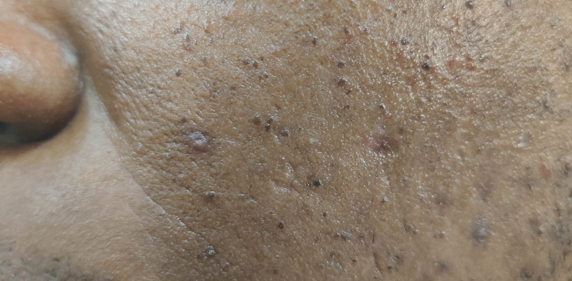 Healing ulcer on a dark skinned person’s cheek 2 of 2